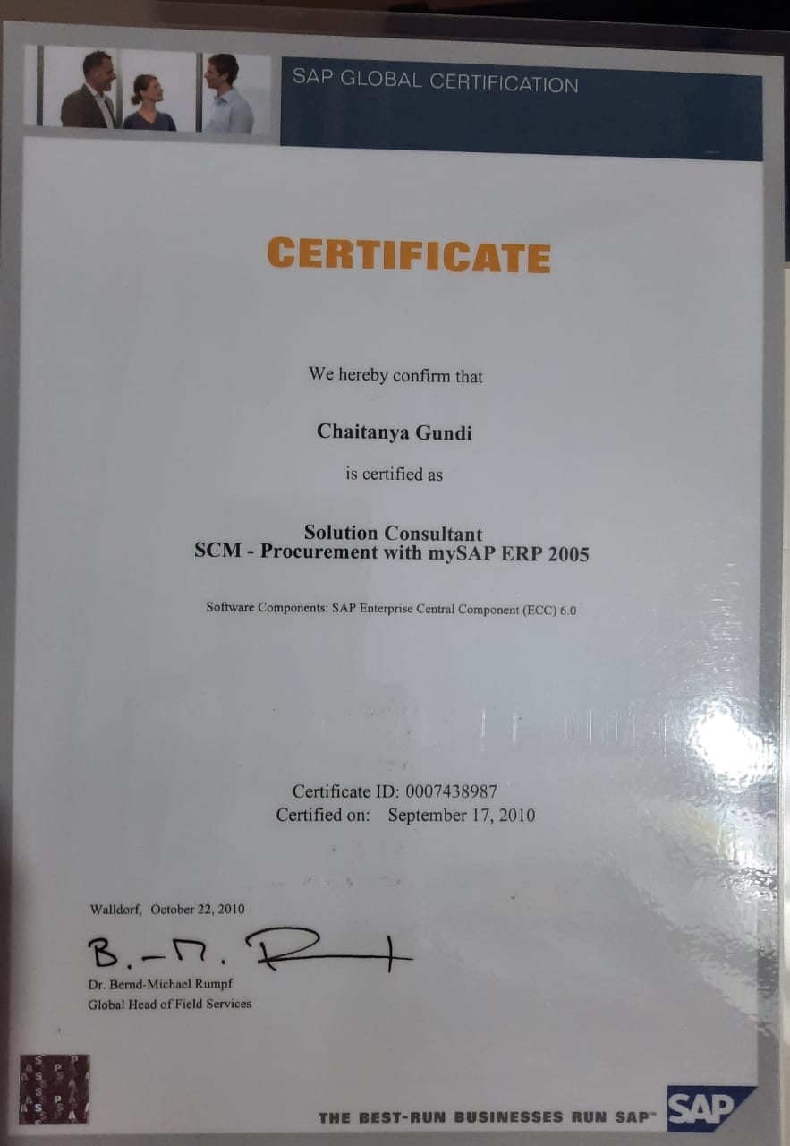 - SAP-MM Consultant Certification from SAP AG, Germany